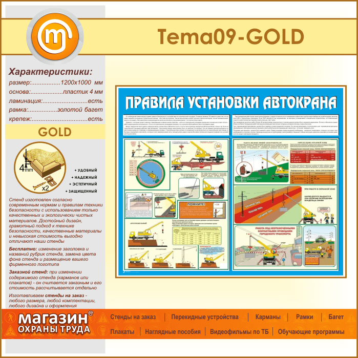 Стенд «Правила установки автокранов» (TM-09-GOLD) в Москве купить