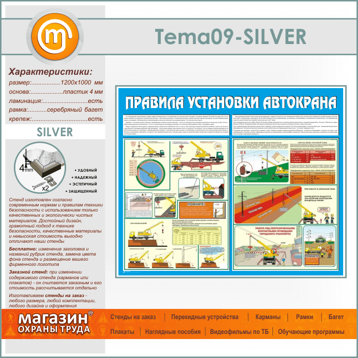Стенд «Правила установки автокранов» (TM-09-SILVER) в Москве купить