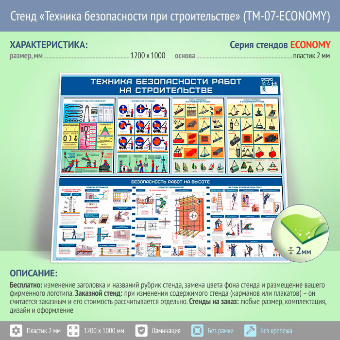 Стенд «Техника безопасности при строительстве» (TM-07-ECONOMY) в Москве купить