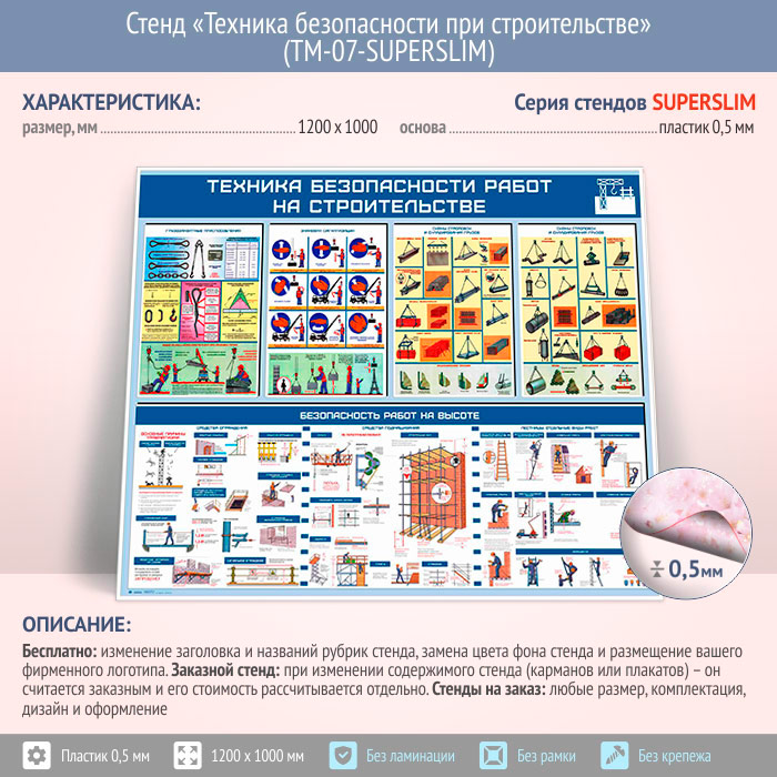 Стенд «Техника безопасности при строительстве» (TM-07-SUPERSLIM) в Москве купить