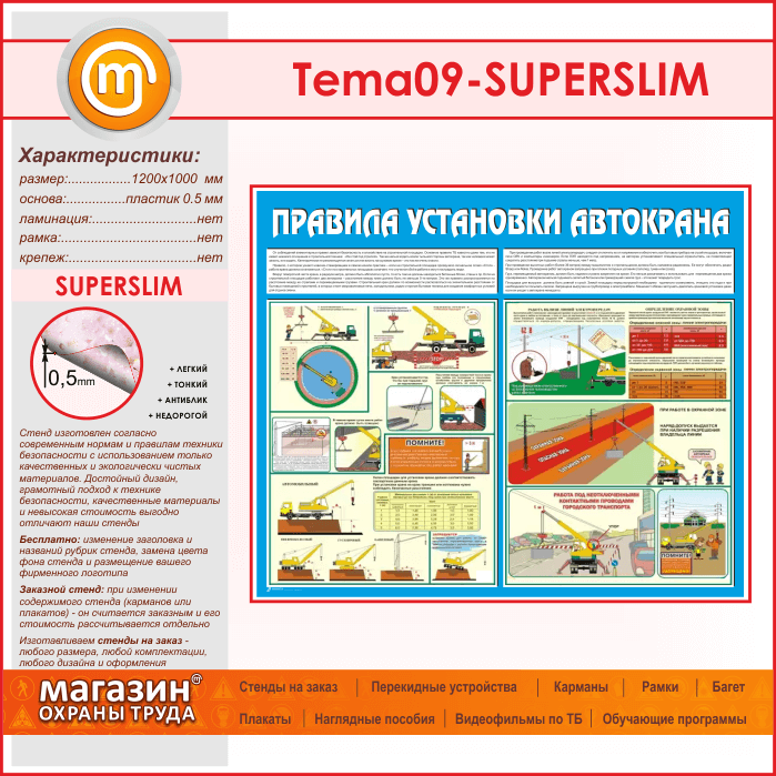 Стенд «Правила установки автокранов» (TM-09-SUPERSLIM) в Москве купить