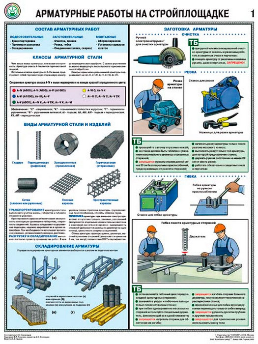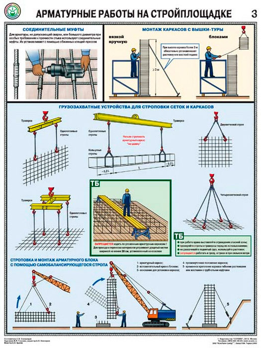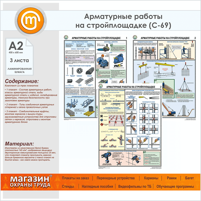 Плакаты «Арматурные работы на стройплощадке» (С-69, ламинированная бумага, А2, 3 листа) в Москве купить