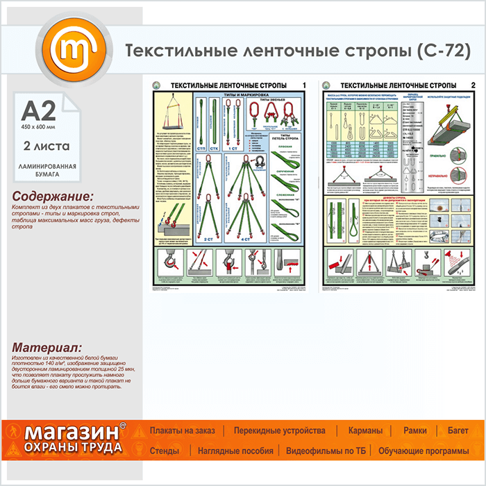 Плакаты «Текстильные ленточные стропы» (С-72, ламинированная бумага, А2, 2 листа) в Москве купить
