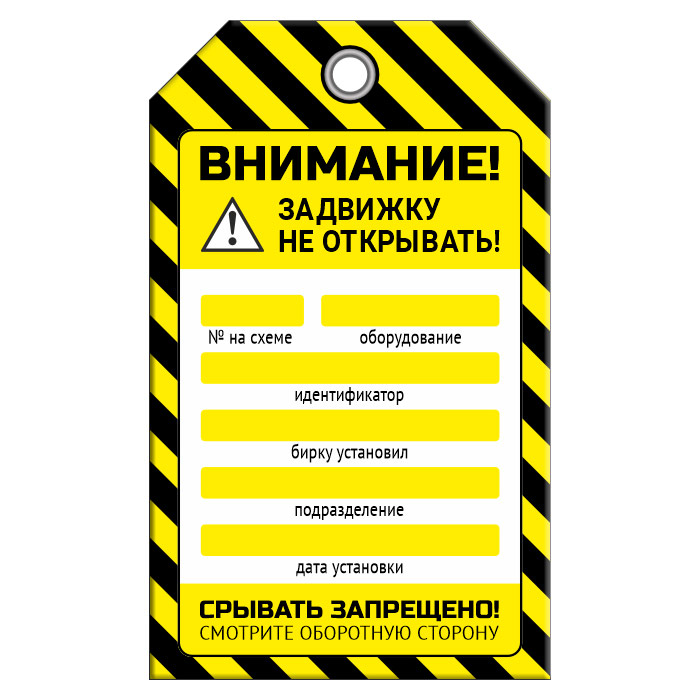 Бирка «ЗАДВИЖКУ НЕ ОТКРЫВАТЬ!» (1 шт., двусторонняя, пластик, 70х115 мм) в Москве купить