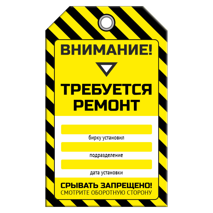 Бирка «ТРЕБУЕТСЯ РЕМОНТ!» (1 шт., двусторонняя, пластик, 70х115 мм) в Москве купить