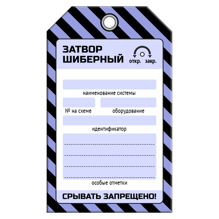 Бирка «ЗАТВОР ШИБЕРНЫЙ» (1 шт., односторонняя, пластик, 70х115 мм) в Москве купить