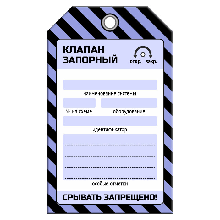 Бирка «КЛАПАН ЗАПОРНЫЙ» (1 шт., односторонняя, пластик, 70х115 мм) в Москве купить