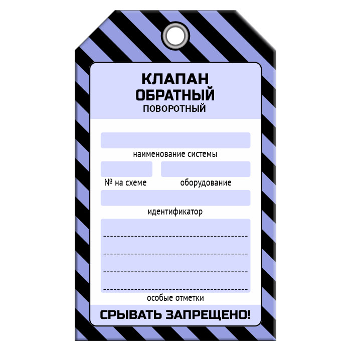 Бирка «КЛАПАН ОБРАТНЫЙ ПОВОРОТНЫЙ» (1 шт., односторонняя, пластик, 70х115 мм) в Москве купить
