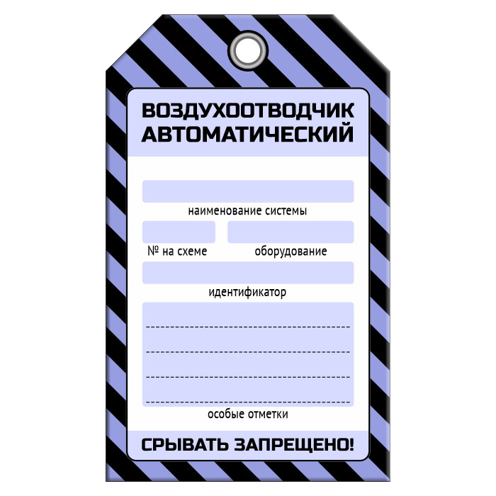 Бирка «ВОЗДУХООТВОДЧИК АВТОМАТИЧЕСКИЙ» (1 шт., односторонняя, пластик, 70х115 мм) в Москве купить