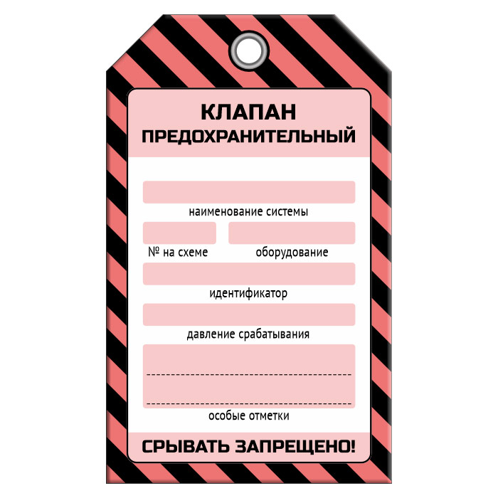 Бирка «КЛАПАН ПРЕДОХРАНИТЕЛЬНЫЙ» (1 шт., односторонняя, пластик, 70х115 мм) в Москве купить