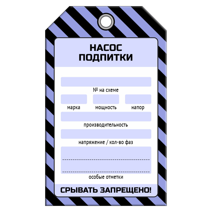 Бирка «НАСОС ПОДПИТКИ» (1 шт., односторонняя, пластик, 70х115 мм) в Москве купить
