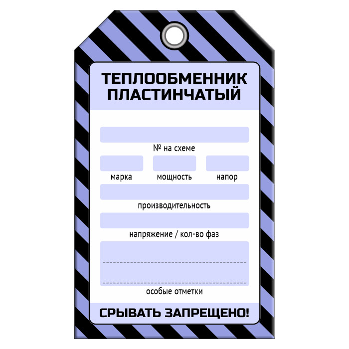 Бирка «ТЕПЛООБМЕННИК ПЛАСТИНЧАТЫЙ» (1 шт., односторонняя, пластик, 70х115 мм) в Москве купить