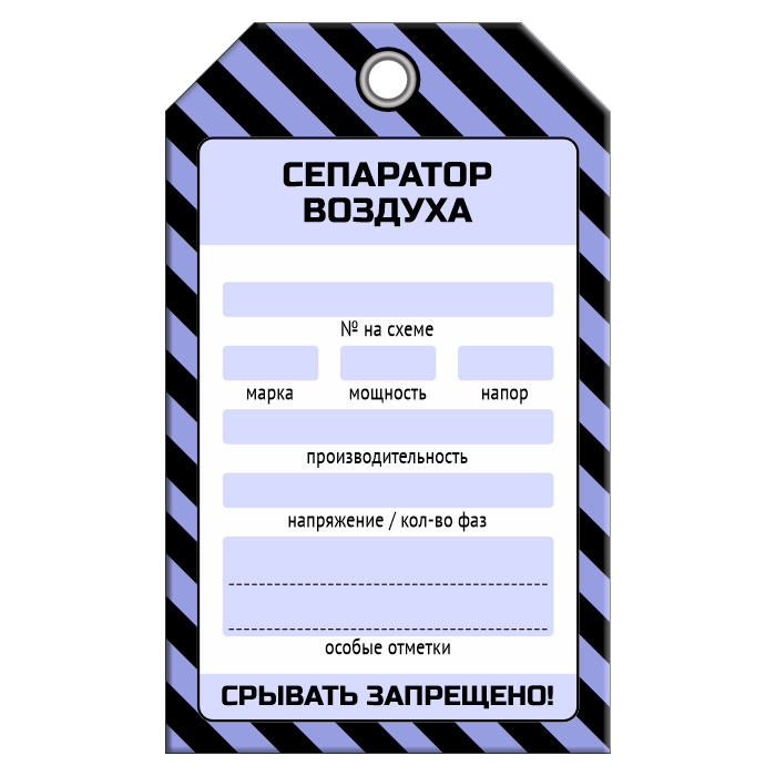 Бирка «СЕПАРАТОР ВОЗДУХА» (1 шт., односторонняя, пластик, 70х115 мм) в Москве купить