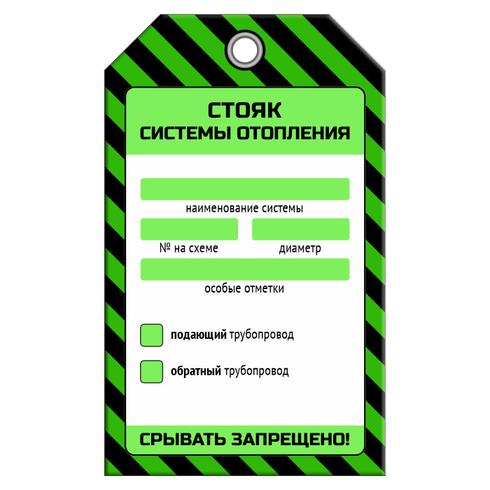 Бирка «СТОЯК СИСТЕМЫ ОТОПЛЕНИЯ» (1 шт., односторонняя, пластик, 70х115 мм) в Москве купить