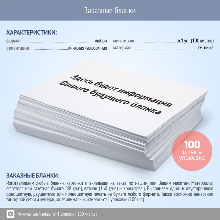 Бланки НА ЗАКАЗ в Москве купить