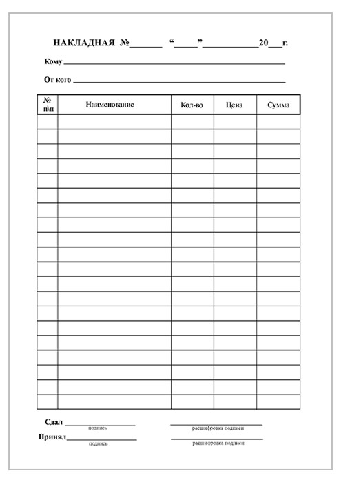 Накладная (упаковка из 100 штук) в Москве купить