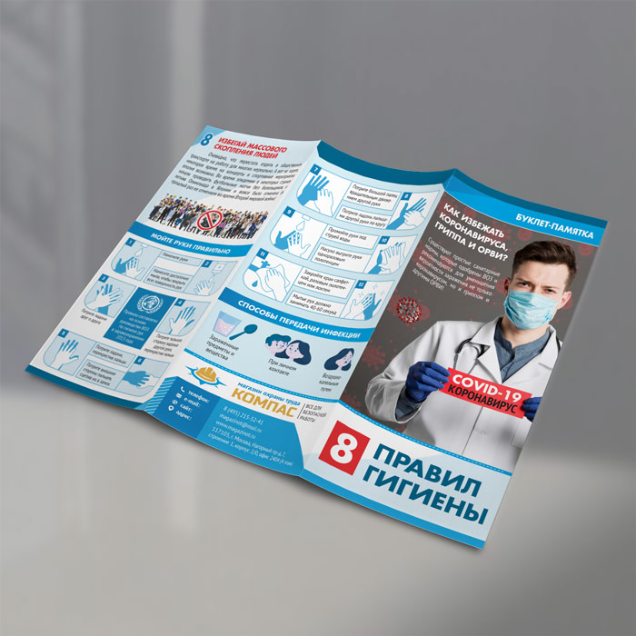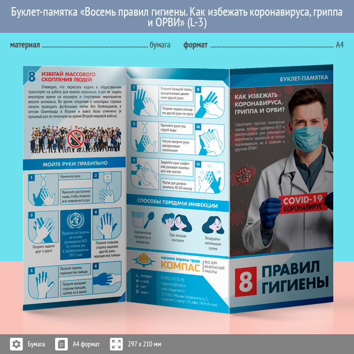 Буклет-памятка «Восемь правил гигиены. Как избежать коронавируса, гриппа и ОРВИ» (L-3) в Москве купить