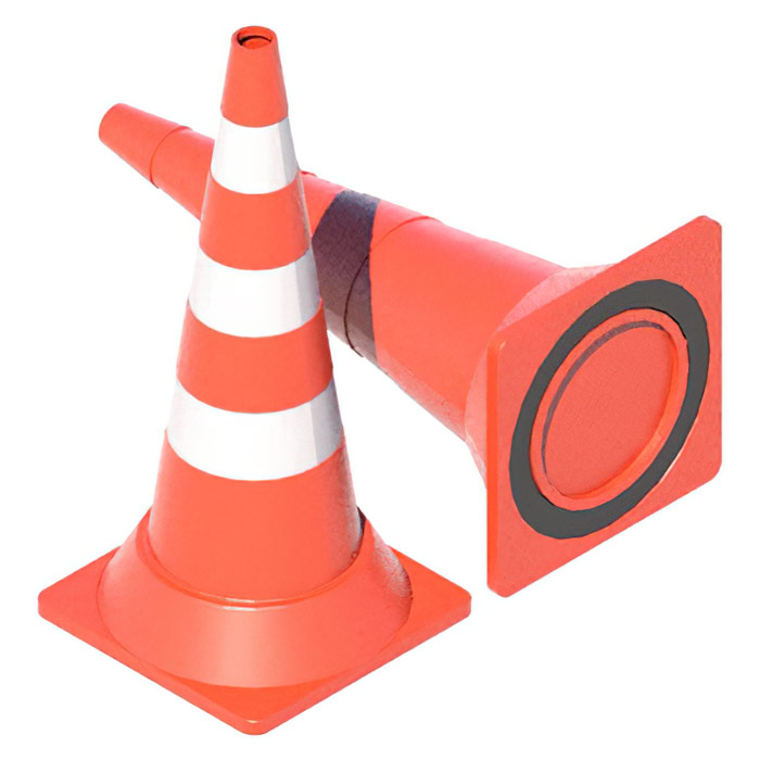 Водоналивной дорожный конус 750 мм с цельным днищем и полимер-песчаным утяжелителем с тремя светоотражающими полосами в Москве купить