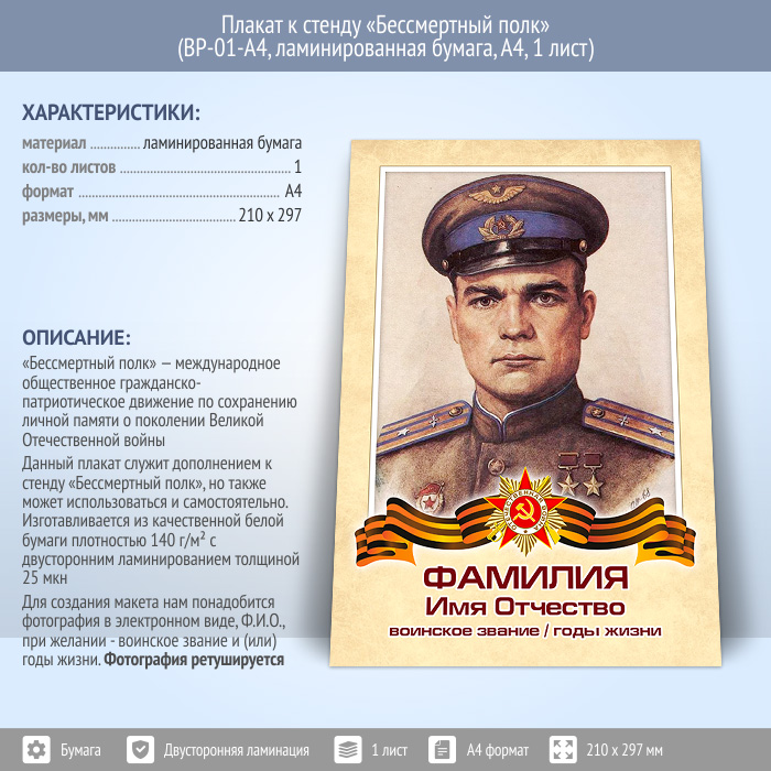 Плакат к стенду «Бессмертный полк» + ретушь фото (BP-01-A4, ламинированная бумага, А4, 1 лист) в Москве купить