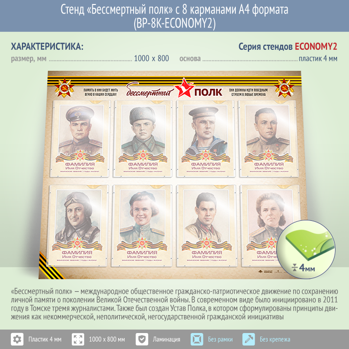 Стенд «Бессмертный полк» с 8 карманами А4 формата (BP-8K-ECONOMY2) в Москве купить