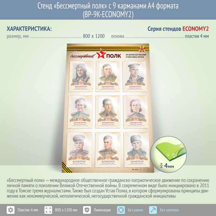 Стенд «Бессмертный полк» с 9 карманами А4 формата (BP-9K-ECONOMY2) в Москве купить