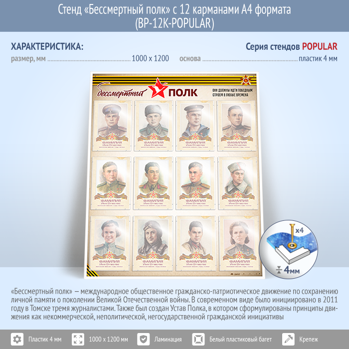 Стенд «Бессмертный полк» с 12 карманами А4 формата (BP-12K-POPULAR) в Москве купить