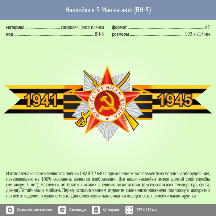 Наклейка к 9 Мая на авто А2 формата (BH-5) в Москве купить