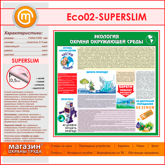 Стенд «Экология - Охрана окружающей среды» (ECO-02-SUPERSLIM) в Москве купить