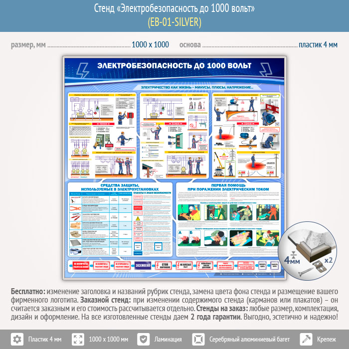 Стенд «Электробезопасность до 1000 вольт» (EB-01-SILVER) в Москве купить