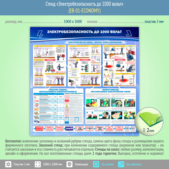 Стенд «Электробезопасность до 1000 вольт» (EB-01-ECONOMY) в Москве купить