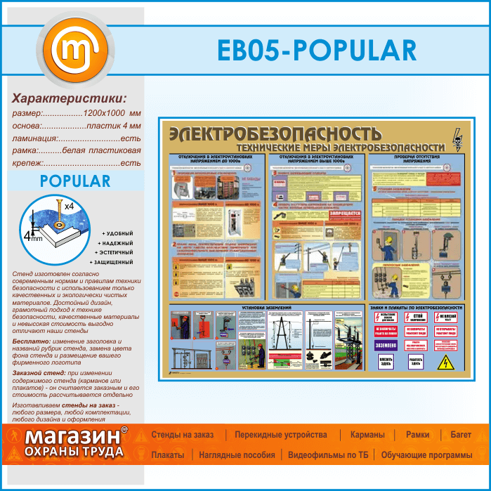 Стенд «Электробезопасность. Технические меры электробезопасности» (EB-05-POPULAR) в Москве купить