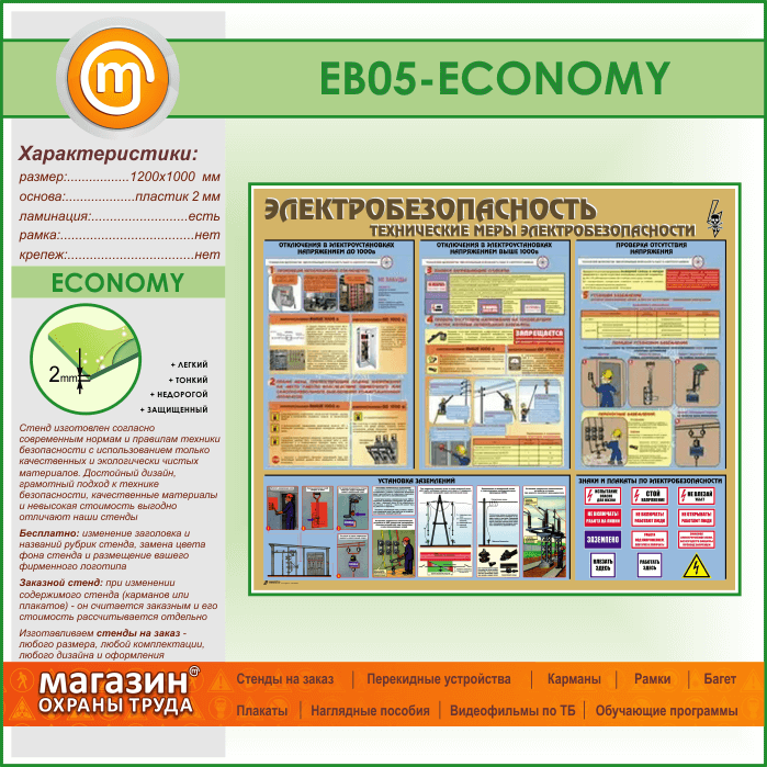 Стенд «Электробезопасность. Технические меры электробезопасности» (EB-05-ECONOMY) в Москве купить