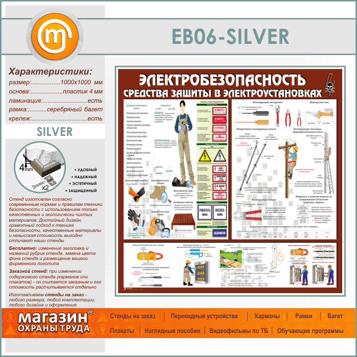 Стенд «Электробезопасность. Средства защиты в электроустановках» (EB-06-SILVER) в Москве купить