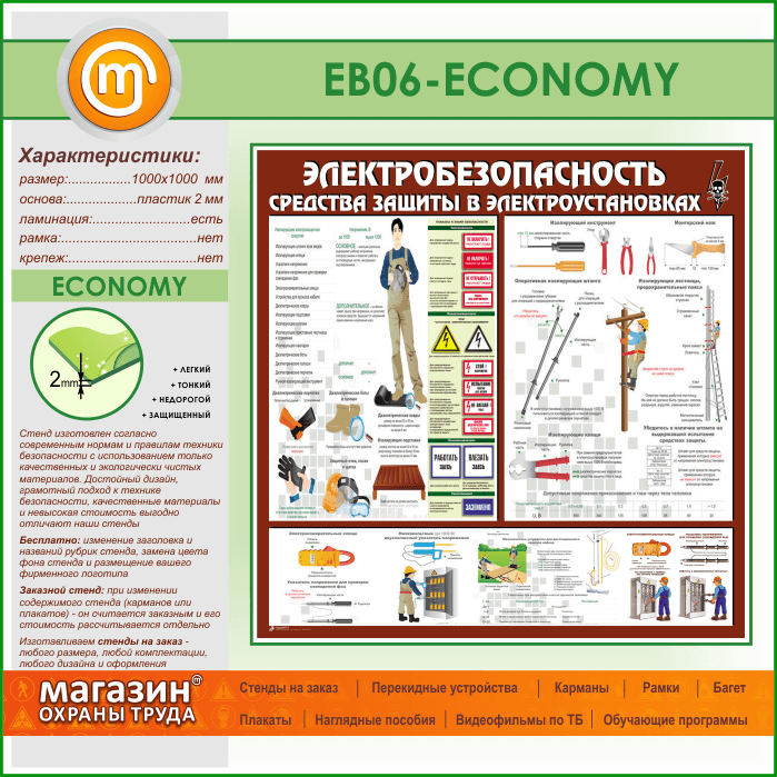 Стенд «Электробезопасность. Средства защиты в электроустановках» (EB-06-ECONOMY) в Москве купить
