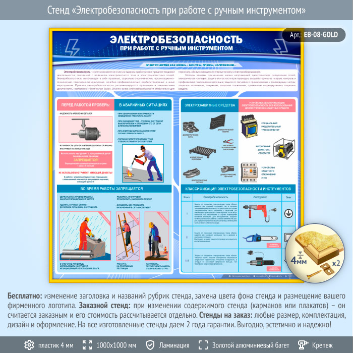 Стенд «Электробезопасность при работе с ручным инструментом» (EB-08-GOLD) в Москве купить