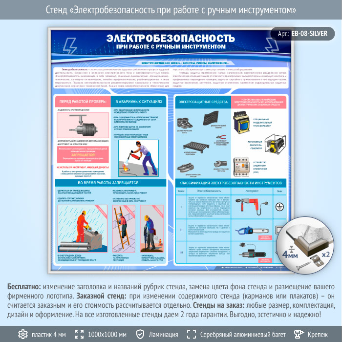 Стенд «Электробезопасность при работе с ручным инструментом» (EB-08-SILVER) в Москве купить