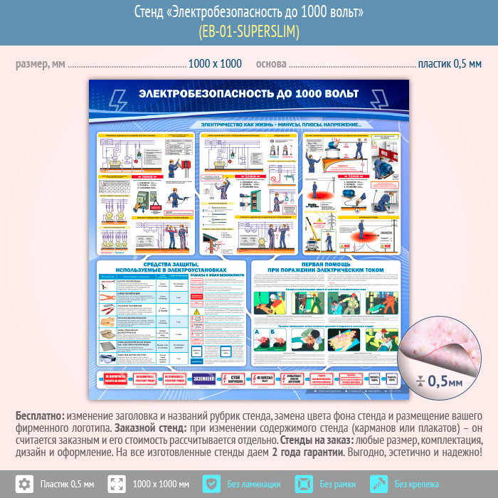 Стенд «Электробезопасность до 1000 вольт» (EB-01-SUPERSLIM) в Москве купить