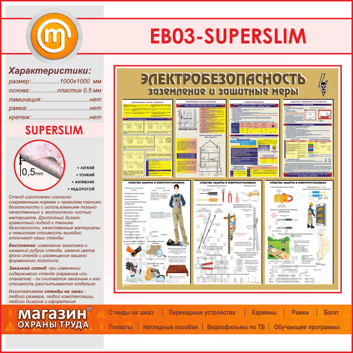 Стенд «Электробезопасность. Заземление и защитные меры» (EB-03-SUPERSLIM) в Москве купить