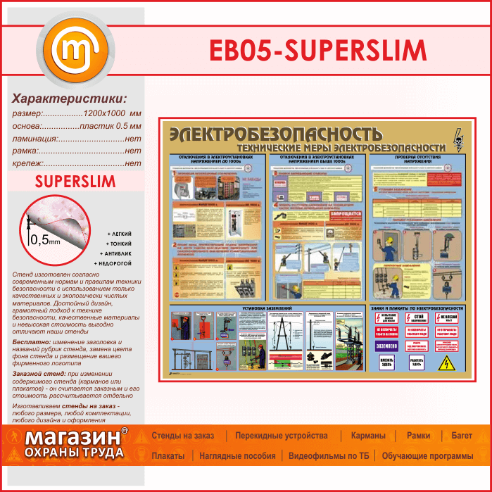 Стенд «Электробезопасность. Технические меры электробезопасности» (EB-05-SUPERSLIM) в Москве купить