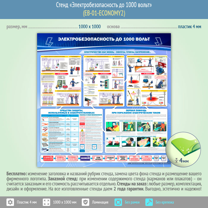 Стенд «Электробезопасность до 1000 вольт» (EB-01-ECONOMY2) в Москве купить