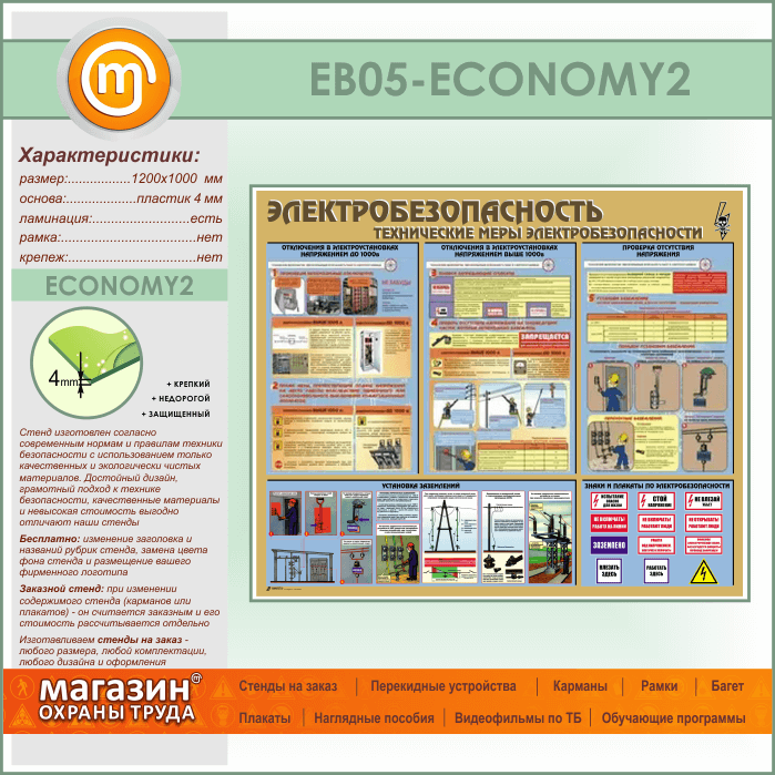 Стенд «Электробезопасность. Технические меры электробезопасности» (EB-05-ECONOMY2) в Москве купить