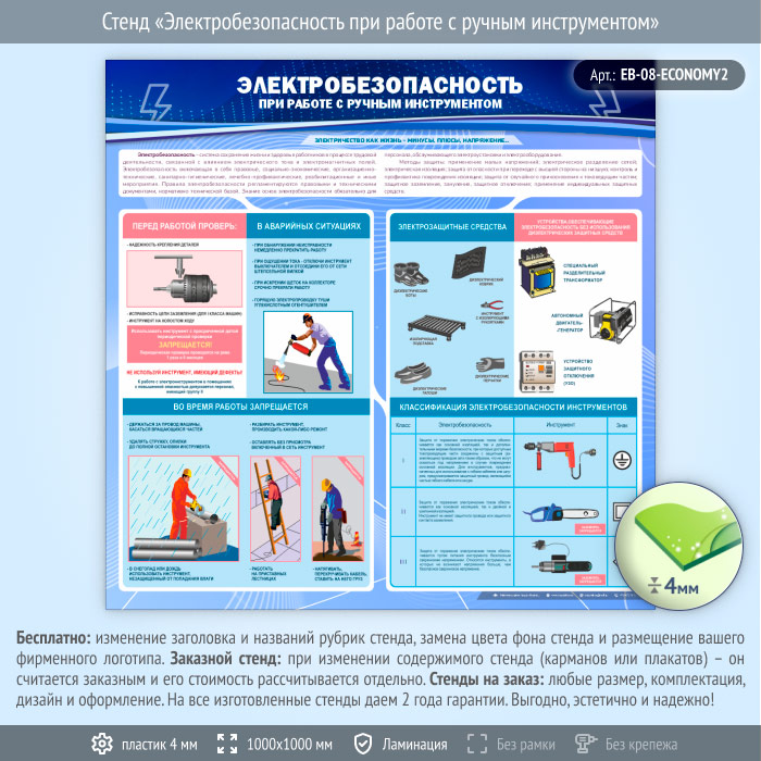 Стенд «Электробезопасность при работе с ручным инструментом» (EB-08-ECONOMY2) в Москве купить