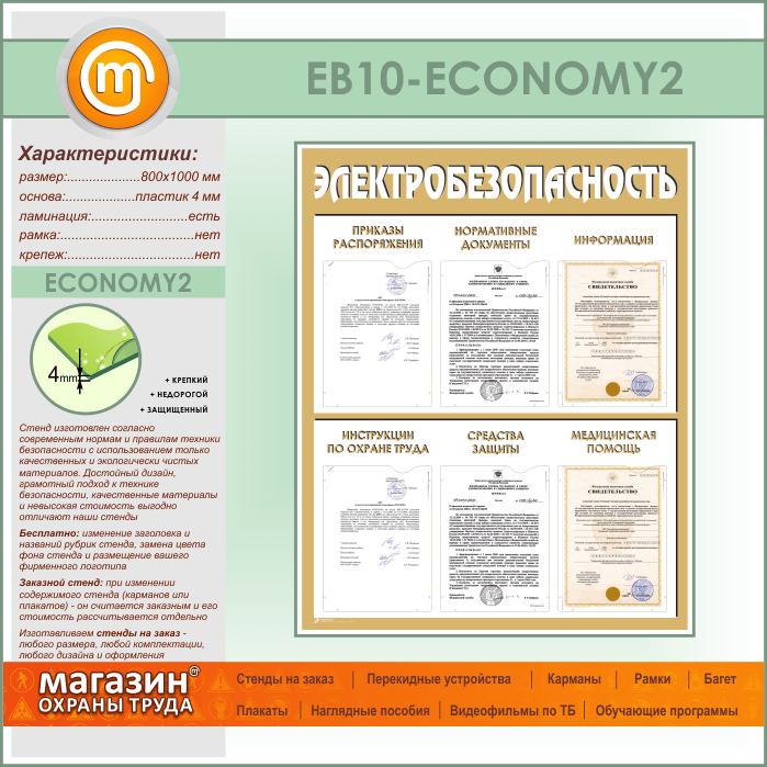 Стенд «Электробезопасность» с 6 карманами (EB-10-ECONOMY2) в Москве купить
