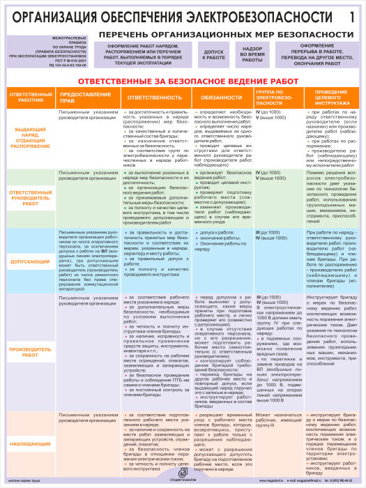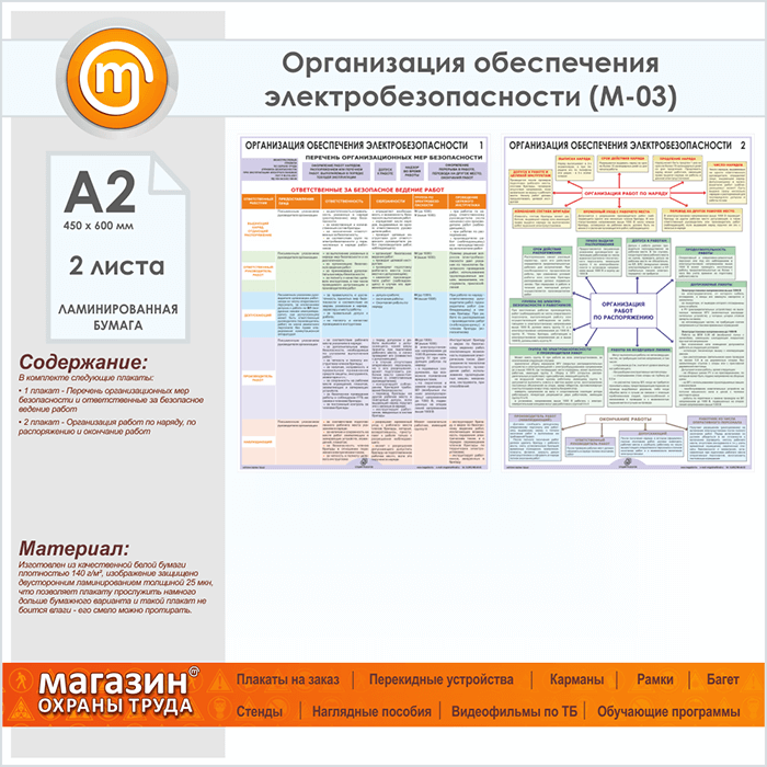 Плакаты «Организация обеспечения электробезопасности» (М-03, ламинированная бумага, А2, 2 листа) в Москве купить