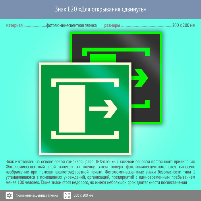 Знак E20 «Для открывания сдвинуть» (фотолюминесцентная пленка, 200х200 мм) в Москве купить