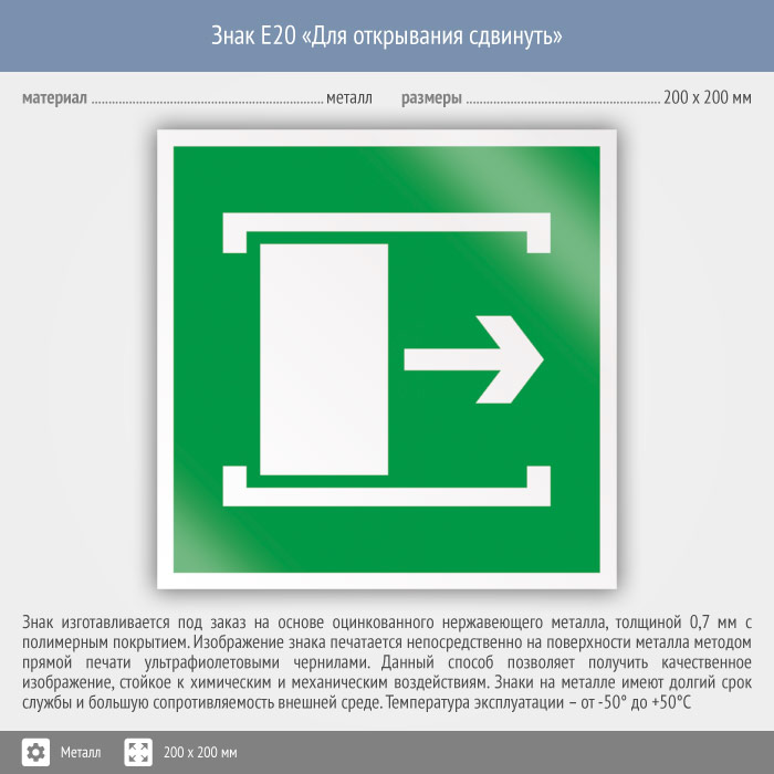Знак E20 «Для открывания сдвинуть» (металл, 200х200 мм) в Москве купить