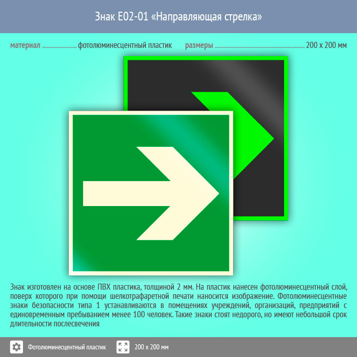 Знак E02-01 «Направляющая стрелка» (фотолюминесцентный пластик, 200х200 мм) в Москве купить