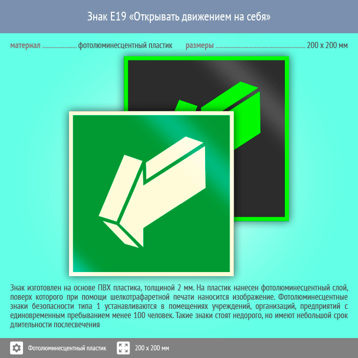 Знак E19 «Открывать движением на себя» (фотолюминесцентный пластик, 200х200 мм) в Москве купить