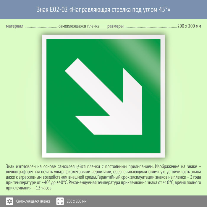 Знак E02-02 «Направляющая стрелка под углом 45°» (пленка, 200х200 мм) в Москве купить