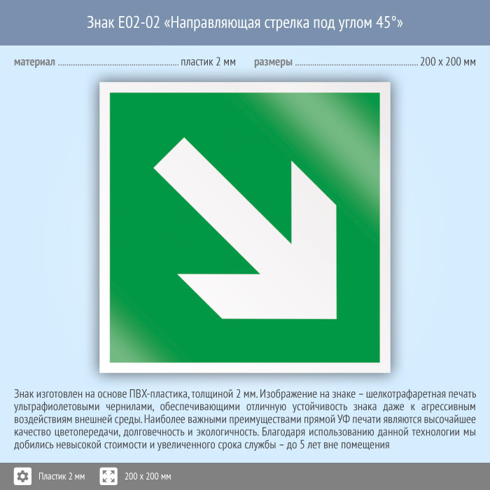 Знак E02-02 «Направляющая стрелка под углом 45°» (пластик, 200х200 мм) в Москве купить
